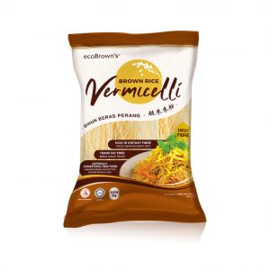 ecoBrown’s Brown Rice Vermicelli is a healthier option for your meal as the brown rice is a type of whole grain with higher amount of dietary fibre compare to other vermicelli that made from polished white rice. The product is formulated from natural brown rice mixed with corn starch and sago starch to give tender, chewy and smooth texture to the product.