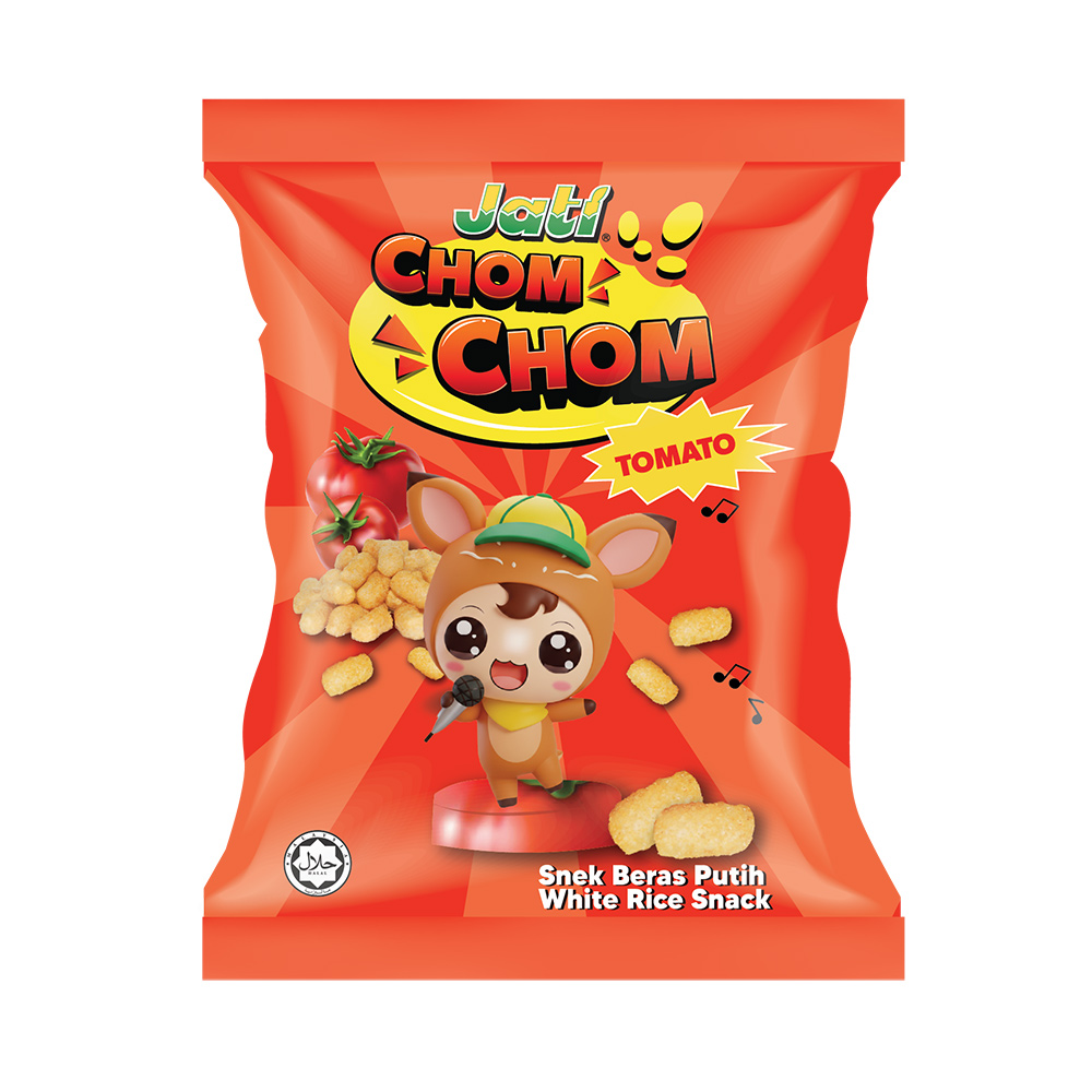 Product Code: JCCT Ingredients: White Rice Puff (60%), Vegetable Oil (Palm), Seasonings [Tomato (2%)] (contains soybeans), Sugar, Garlic Powder, Onion Powder & Paprika. Packing Size: 14g, 60g Country of Origin: Malaysia